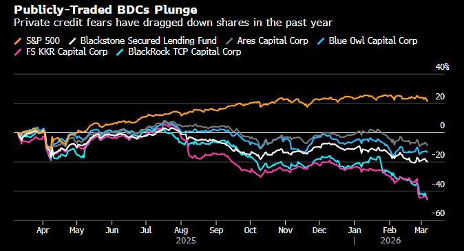 Ačkoliv umělá inteligence plní stránky novin, nejlukrativnějším a fundamentálně nejzásadnějším bojištěm pro BlackRock i Blackstone v horizontu dalších pěti let je trh soukromého úvěrování (private credit). Ústup tradičních bankovních institucí od úvěrování středně velkých a velkých podniků vytvořil na trhu gigantické vakuum, které alternativní správci systematicky vyplňují. Z perspektivy společnosti Blackstone se jedná o expandující zdroj financování reálné ekonomiky, který představuje bezprostřední tržní příležitost o velikosti neuvěřitelných 30 bilionů dolarů. Celková úvěrová platforma Blackstone dosáhla již počátkem roku 2026 objemu 520 miliard dolarů.