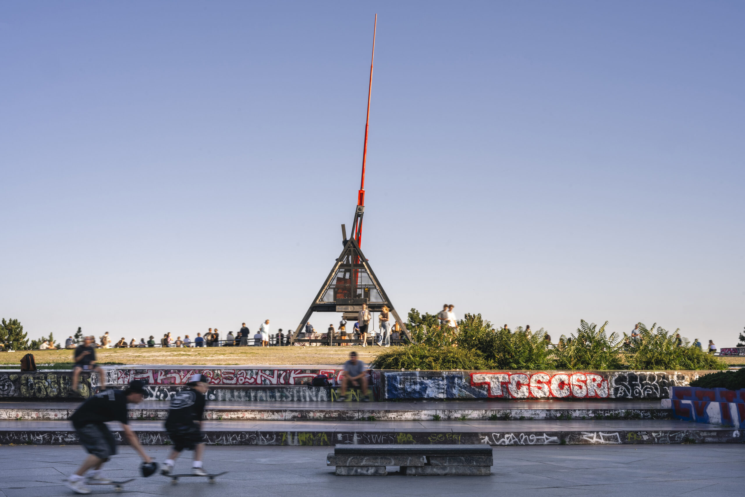Kinetická socha Vratislava Karla Nováka, známá také jako Kyvadlo, byla vztyčena v roce 1991 na místě bývalého Stalinova pomníku. S výškou 25 metrů a vahou 7 tun měla původně stát jen dočasně při příležitosti Všeobecné československé výstavy. Už více než tři desetiletí je však nedílnou součástí panoramatu hlavního města. Ručička metronomu se vychyluje až o 60 stupňů a jeho pohyb zajišťuje dvoutunové závaží.